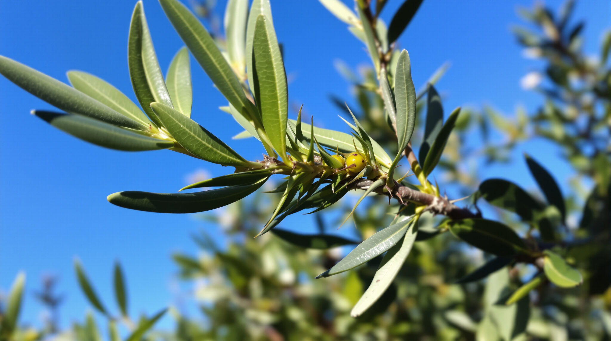 L’oléastre épineux prospère dans des conditions méditerranéennes authentiques, avec des étés chauds et secs et des hivers modérément froids. Son système racinaire développé lui permet de puiser l’eau en profondeur, mais un apport hydrique raisonné pendant les premières années favorise son établissement.